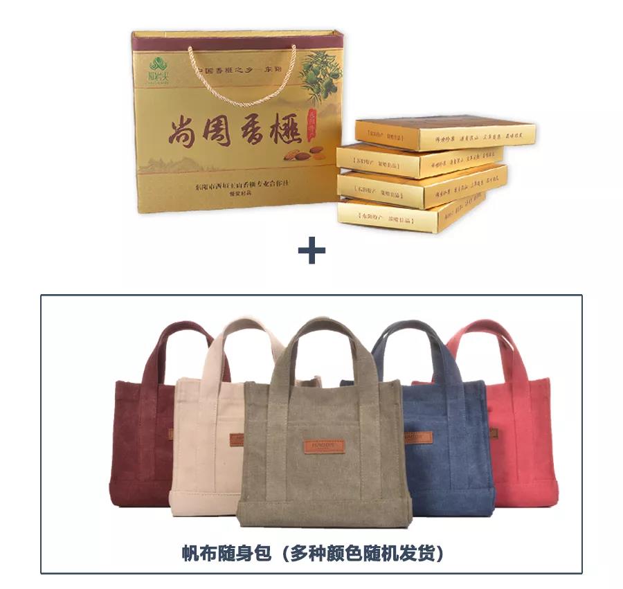 單次采購(gòu)滿2888元(含2888),在香榧禮盒的基礎(chǔ)上獲贈(zèng)帆布隨身包一只;
